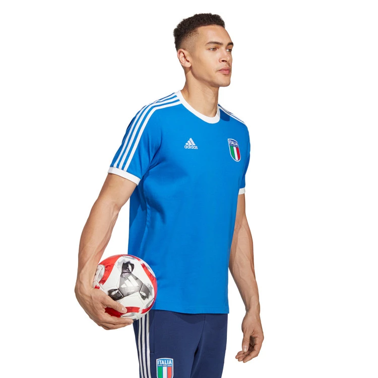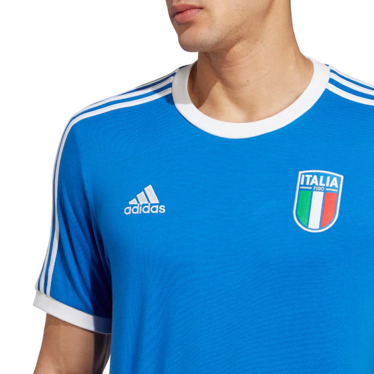 El escudo tricolor. Las 3 bandas de adidas. Esta camiseta de la selección italiana de fútbol combina diseño y deporte. Se ha confeccionado en un tejido suave de punto y luce los colores de la primera equipación de la tetracampeona del mundo.
